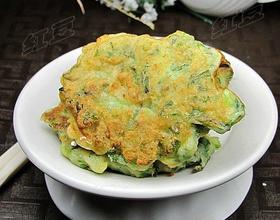平底锅倒少许油,舀入一勺面糊摊成小饼。