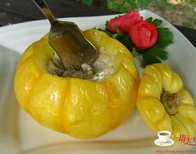 1. 要选大小适中,颜色亮丽的小金瓜,用头尖的刀慢慢的刺下去,再沿着画圈, 就能将金瓜盖揭起;