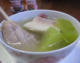 把五花肉和棒骨放砂锅中煮,大火煮开后,撇去浮沫,加料酒、姜,转小火