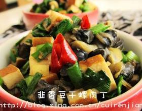 豆干,韭菜,蒜头,姜片,干辣椒分别切成细丁