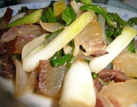 加入大蒜,洋葱翻炒洋葱变色加盐继续翻炒一分钟出锅。