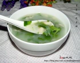 最后,加入面糊,煮开,慢慢搅动。加入盐、味精、香油调味。