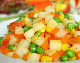 1.山药汁很引起部分人的皮肤过敏,所以削皮的时候追好戴上手套;2.万一沾到少许山药汁,立即反复冲洗干净,如果已经发痒,可在洗净之后擦少许白花油,过段时间痒感自会消失;3.多次的冲洗,可以冲洗掉山药大部分的黏液,使之口感更爽脆,4.汆烫过的五彩粒已经呈半熟状态,所以烹炒时间不易过长,以免失去爽脆之口感;5.最后的勾芡步骤注意不要太浓,淡淡的芡汁即可,也可省略。
