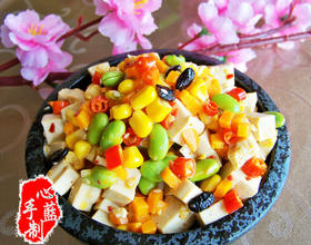 罗里吧嗦:1.白干切块不要太大,过水后白干体积会膨大,在视觉上与彩蔬粒不统一2.彩蔬粒过水,第一是易熟,第二是颜色更鲜艳3.这道菜口感清淡,加入辣椒红油可以丰富口感
