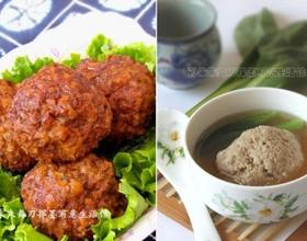 - 8. 放汤用料烧开放丸子小火炖1小时剩少许汤,盛出,汤勾薄芡点名油浇在丸子上即可