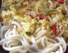主要是最后闷一闷,白菜杆里自然流出来的水分 加到面条里最好吃了。但是不要加生水。
