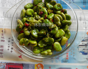 4、倒入腌过的蚕豆,高火转5分钟,拿出后再加少量的盐、鸡精拌一下就好啦!