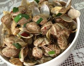 - 8. 放入煮好的花蛤加料酒、生抽、醋、鸡精、盐、白糖翻炒