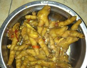 对于刚学做饭的美眉们这是道很简单的菜式鸡爪放开水中绰去腥味,加一大片姜。滚几分钟。