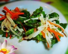 金针菇和生菜含有大量纤维,能促进肠胃蠕动,却几乎没有什么热量,口味又好,适合想*的人吃。生菜可以改成大白菜,金针菇也可以直接用水煮熟后凉凉,加胡萝卜丝凉拌后再用菜叶包起来,可为一道美味爽口的凉拌菜