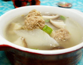 - 4. 大火煮15分钟左右,待所有食材熟透,加盐调味,出锅前撒入葱花即可。水灵灵的大白萝卜不仅可以顺气,更可以帮助消化,和高蛋白的牛肉丸子一起烹煮,加上鲜香菇自然的调味,这道汤完全不需要再添加味精之类就很鲜香甘美,你值得一试!