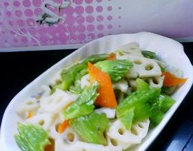 藕片200g、胡萝卜50g、苦瓜100g、葱姜。