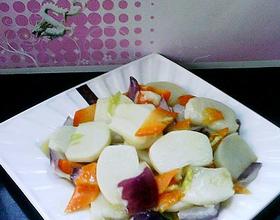 年糕100g、胡萝卜50g、洋葱50g、葱姜。