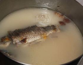 洗干净鱼,下锅煎好,不要看到血喔!不然煲出来的汤就不白!