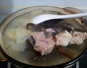 加入海带和冬瓜,加盐,鸡精,继续焖30分钟-60分钟,