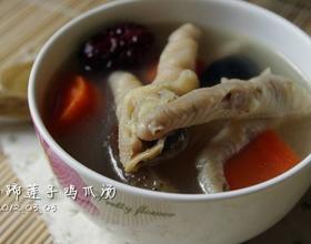 把处理好的鸡爪,香菇还有莲子一起倒入汤锅,加适量水,大火煮开之后改中小火煲1小时。