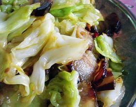 将包菜撕碎,腊肉切片,大蒜切沫,辣椒切段。