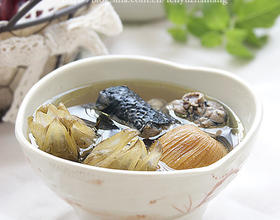 然后在电炖盅里注入适量热水(不超过水位线),盖上内胆和电炖盅的盖子。