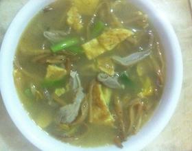 锅里放油姜蒜放炒再放猪肚炒放水水开了再放入金针菇熟了再放鸡蛋葱