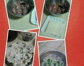 猪肉、木耳,冬菇剁碎,拌上适量的生油,酱油,生粉和盐,使肉入味.