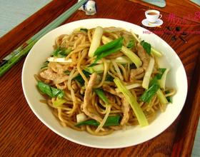 1. 炒面一般是半成品的面,我用的是武汉特色的热干面;如果是普通的干面条,要先煮至六层熟,加入点油,拌均匀备用(加入点油是为了防止面条粘连);2. 炒面前先加肉丝加入调味料提前腌制入味, 先煸炒肉丝, 肉丝变色后加入豆芽和蒜白翻炒;3. 再加入面条一起翻炒, 这时加入调味料,酱油, 盐和胡椒粉; 如果不喜欢酱油, 也可以不加;4. 由于韭黄和青蒜都比较容易熟, 所以出锅前加入, 翻炒均匀即可;5. 配料的蔬菜可以随意加入其它品种, 但这个季节加点青蒜必不可少,会非常香。