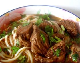 - 20. 碗里盛些面条,牛肉,牛肉汤,再加入些辣椒油,香菜就可以开吃了。