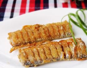 煎锅放油,7成热时,转小火,放入带鱼。不要翻动,几分钟后,用筷子推动鱼时刻翻动。