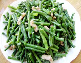 热锅放油,爆香葱姜末,下入瘦肉丝炒散。