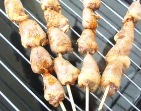 - 7. 鸡心烤好以后拿出来,趁热撒上适量辣椒粉。