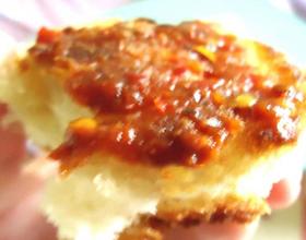 将蒜蓉辣酱涂抹于馒头干的表层(辣酱选择自己喜欢的口味就可以)。