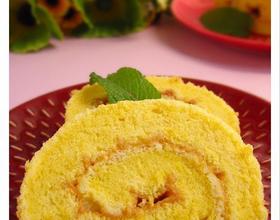 烤好立即出炉倒扣在架空的烤架上(烤架翻转180度,底朝上,下面空出的散热空间能更好的帮蛋糕体散热);蛋糕放凉后翻过来,在蛋糕体上均匀抹上一层炼乳;用刀在蛋糕体头前2CM处切一道,别切到底(有助于在卷蛋糕的时候蛋糕体的卷取) - 9. 先将蛋糕头部弯曲,脱开这部分底纸包住擀面仗;擀面仗向里卷底纸,借外力推动蛋糕向外卷起。