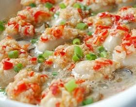 把蚝肉平铺在烤盘里,把料汁浇在每个生蚝上,入预热好的烤箱,200度烤15分钟左右即可。