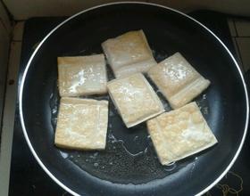 放入豆腐,继续用小火煎,中途记得多翻几次面。