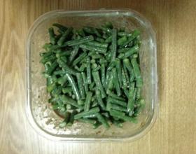 长豆角洗净切段,开水煮一会儿,过凉水沥干
