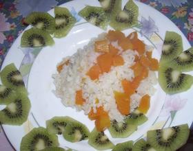 把2碗羊肉汤晾凉、点火把米放在汤锅的下面、上面放南瓜丁、大火煮开以后、变最小火焖20分钟、然后关火、再焖10分钟即可食用。