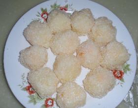 包好以后,滚上一层椰蓉。