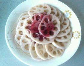 藕片用开水煮10分钟,煮时候里面加一块冰糖