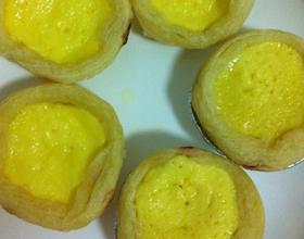 制作挞水:牛奶、淡奶油、炼乳、糖,隔水加热至糖化开,冷掉后加蛋黄,低筋粉,搅匀。过滤两次。