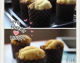 - 5. 将拌好的面糊倒入模具,2/3满即可,在上面放入准备好的核桃仁,装烤盘放入预热好的烤箱,中层,185度约25分钟。