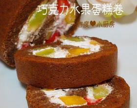 - 8. 抹上打发的奶油,撒上水果粒,卷起,固定30分钟即可。