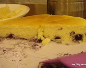 180度15分钟,之后160度25分钟,烤到表面上色并裂开(因为我加的是冷冻蓝莓,烤了非常久,总共加起来有80分钟,建议要么不加,要么加已经解冻的鲜果),关火,留在烤箱里40~60分钟(我放了50分钟),膨胀起的蛋糕会缩下去,取出