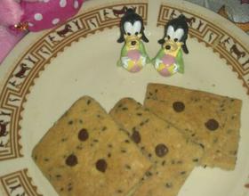 - 8. 排入烤盘点缀上巧克力粒,放入175度预热好的烤箱中层,烤15分钟