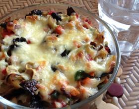 把胡萝卜、青椒、红椒、洋葱切丁,土豆,蘑菇切片,切好后都放一个容里。