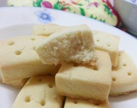把面粉和粘米粉均匀混合过筛后加入盐,放进打发的黄油里,慢慢揉搓,会比较干,尽量的合成团,但不能使劲压面,口感会硬。我为了均匀点弄成了3个面团