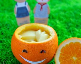 橙子在顶部切开,用勺子小心的把橙肉挖出,橙皮盅可以做容器。