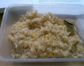 好~把米饭扔进去炒~一般别人会用冷饭,或煮熟的用冷水弄散,不过我不喜欢松散的,感觉像啃沙子,难以下咽。。。所以煮熟没多久得有点黏最好~!大概是爱吃糯米的缘故。。。呵呵