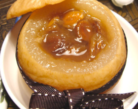 (1)容易上呼吸道感染的儿童平时应经常进食新鲜蔬菜瓜果,以确保对维生素C的需要。富含维生素A的食物如胡萝卜,南瓜等亦是不可少的,这些营养素都有保护呼吸道粘膜的作用。 (2)这道雪梨盅加了罗汉果非常甜润可口,完全掩盖川贝的苦,妈妈们尽管放一万个心,宝贝会欣然接受的。另外梨皮不削掉,是为了方便用勺子将里面炖烂的雪梨肉连同罗汉果的汁一起吃下去,也比较美观。