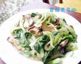 再放入青菜梆,煸炒,最后放入青菜叶,加入食盐,即可出锅。
