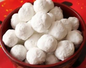9.滚元宵时如果糯米粉不够应及时补充,以防滚动过程馅料之间互相粘连,且滚元宵的动作力度要均匀,这样元宵更易被滚成圆球形,且面皮的厚薄度一致。