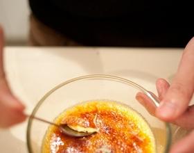 烧完之后,冷却3分钟,用甜点勺均匀敲碎表面